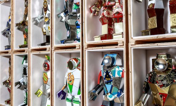 Wie bei allen Produkten, die in der MAD Gallery ausgestellt werden, herrscht Exklusivität. Hervé Stadelmann ist keine Ausnahme und wird aus den feinsten Materialien wie Kupfer, Aluminium und Zink hergestellt. Eindrucksvoll werden sie mit traditionellen Werkzeugen (Zangen, Scheren und Hämmern) ohne den Einsatz von elektronischen Maschinen, die 80 arbeitsintensive Arbeitsstunden erfordern, handgefertigt. Dimensional sind sie auch entworfen, um eine mutige Aussage zu machen und eine Durchschnittshöhe von 70cm zu messen.